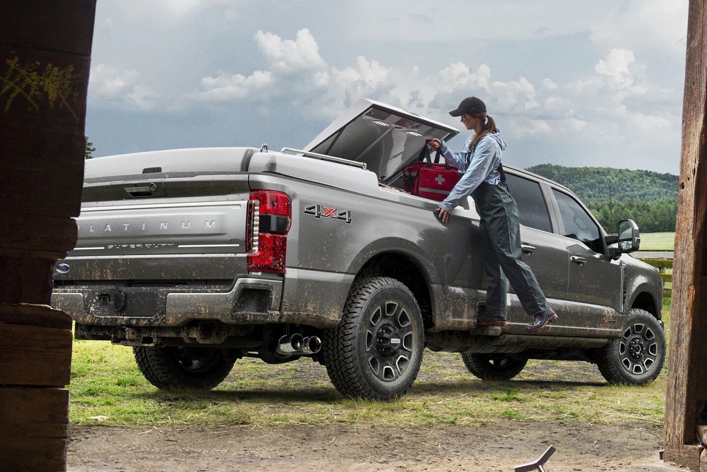 Designed for those who jump in and out of a truck bed more times a day than they care to. An available retractable tailgate step has been lowered 3" than previous Super Duty® models to help you climb into the bed of your truck more easily.